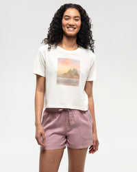 Featuring a retro scenic graphic, this chic crop tee adds a touch of femininity to your wardrobe. Designed with a relaxed, boxy fit and a flattering cropped length, it’s the perfect staple for spring and summer. Whether your out for brunch or enjoying a sunny day, this tee is as versatile as it is stylish.