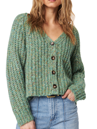 Designed with a slouchy, slightly cropped cut, this button-up knit offers a relaxed fit and an easy, flattering silhouette. The chunky texture adds cozy appeal without feeling heavy, making it a versatile piece for layering or wearing on its own.
