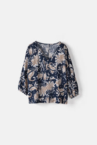 This floral V-neck blouse is crafted from a soft viscose blend for a lightweight, breathable feel. Featuring a relaxed fit and flattering V-neckline, it’s perfect for both everyday wear and evening outings. A timeless piece that transitions seamlessly from day to night.