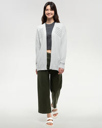 This cardigan is crafted from sustainably sourced organic cotton, making it as gentle on your skin as it is on the planet. Designed with a relaxed fit, drop shoulders, and an easy open-front silhouette, it offers a laid-back yet sophisticated look. The eye-catching stitch pattern adds a subtle touch of texture, making it a versatile staple for any wardrobe.