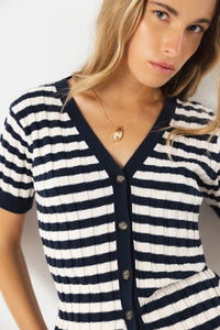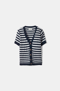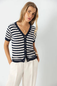 Lightweight Stripe Knit Cardigan - Navy/White
