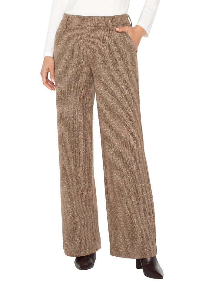 Kelsey Wide Leg Pant - Brown/Camel Herringbone
