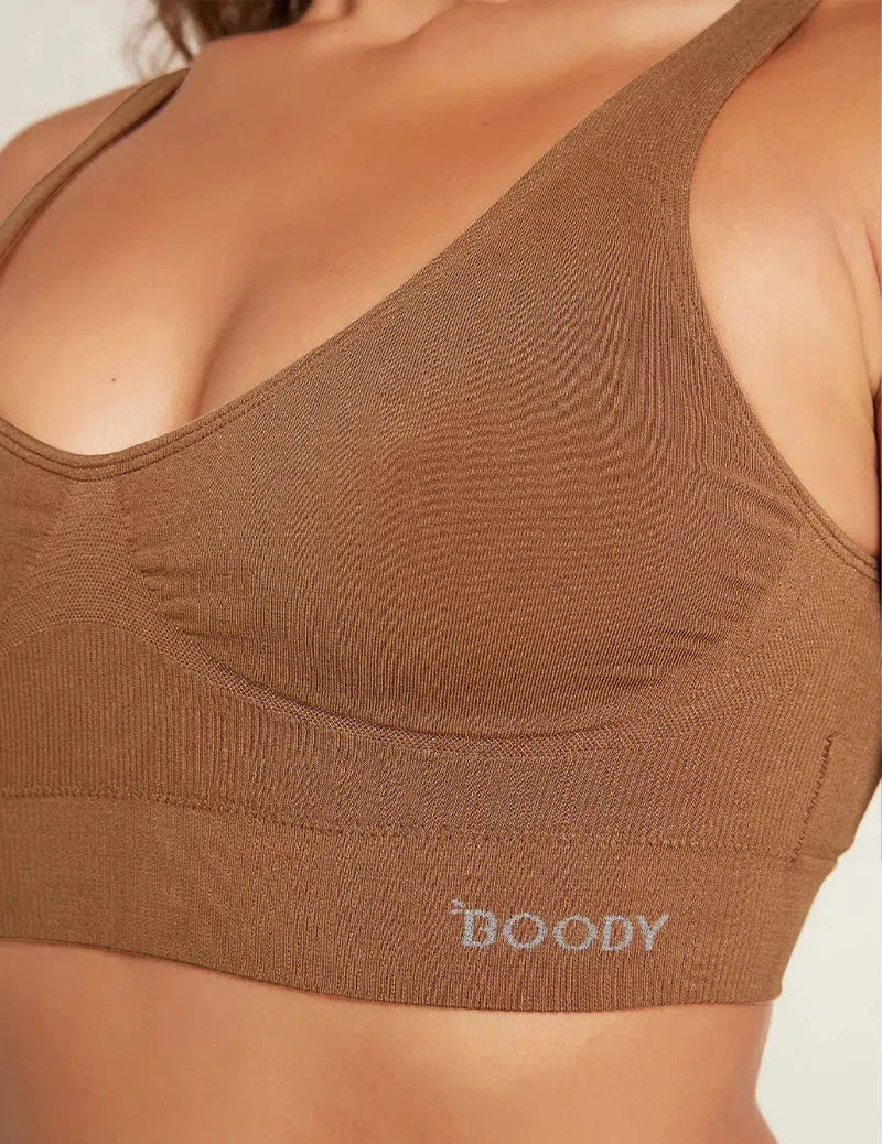 Crafted from a soft and breathable bamboo-viscose, this bra also features a wire free design, smooth, lightly padded removable cups, light-medium support & wide straps for the perfect amount of shoulder comfort. Trust us, you will not even know you are wearing a bra!!