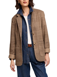 Crafted from a luxurious brushed fabric, this blazer features a relaxed boyfriend fit with light shoulder padding for subtle shape. Details include a classic button closure, patch pockets, and tailored lines that make it easy to dress up or down.