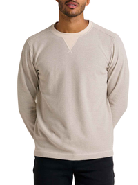 Featuring an outer waffle texture and a smooth interior, this crew delivers both tactile interest and everyday comfort. Crafted from 100% recycled materials, it offers a cozy, eco-friendly update on classic thermal shirts. Thoughtful details, such as the woven shark's tooth design at the center front neck, ribbed collar, and cuffs, add a touch of refinement.
