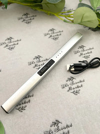 Ditch the fuel and forget the flame—our rechargeable lighter is a sleek, sustainable alternative for lighting candles with ease. Simply slide the switch to "on" and press the button to activate the electric arc between the two prongs. Place the arc directly on the wick to ignite. When you're done, switch to "off" for added safety.