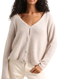 Crafted from a luxuriously soft alpaca blend, this cardigan brings warmth, comfort, and sophistication together in one timeless piece. With its relaxed fit, button front, ribbed trims, and dropped shoulders, it offers an effortlessly chic silhouette that moves with ease. The lightweight knit makes it perfect for year-round layering and versatile styling.