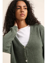 Crafted from a luxuriously soft alpaca blend, this cardigan brings warmth, comfort, and sophistication together in one timeless piece. With its relaxed fit, button front, ribbed trims, and dropped shoulders, it offers an effortlessly chic silhouette that moves with ease. The lightweight knit makes it perfect for year-round layering and versatile styling.
