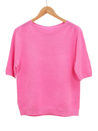 Designed with a relaxed fit, slightly shorter length, and short sleeves, it’s crafted from an ultra-soft cashmere blend that feels luxurious against the skin.