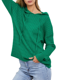Crafted from a luxurious viscose and cashmere blend, it features a relaxed fit, easy draped hood with front ties, and a beautiful cable-knit texture. Designed with a longer length for added coverage, it delivers cozy warmth without sacrificing style.