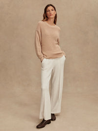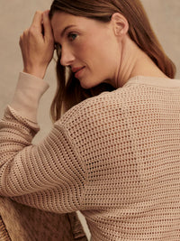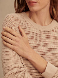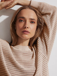 Crafted from a textured open knit, this lightweight crewneck brings a relaxed, modern vibe to your wardrobe. With its breathable design, it's a perfect transition piece between seasons or when you just need a little extra coverage. The ribbed hem and cuffs add a refined touch, making it an ideal choice for both casual lifestyle outfits and active looks.